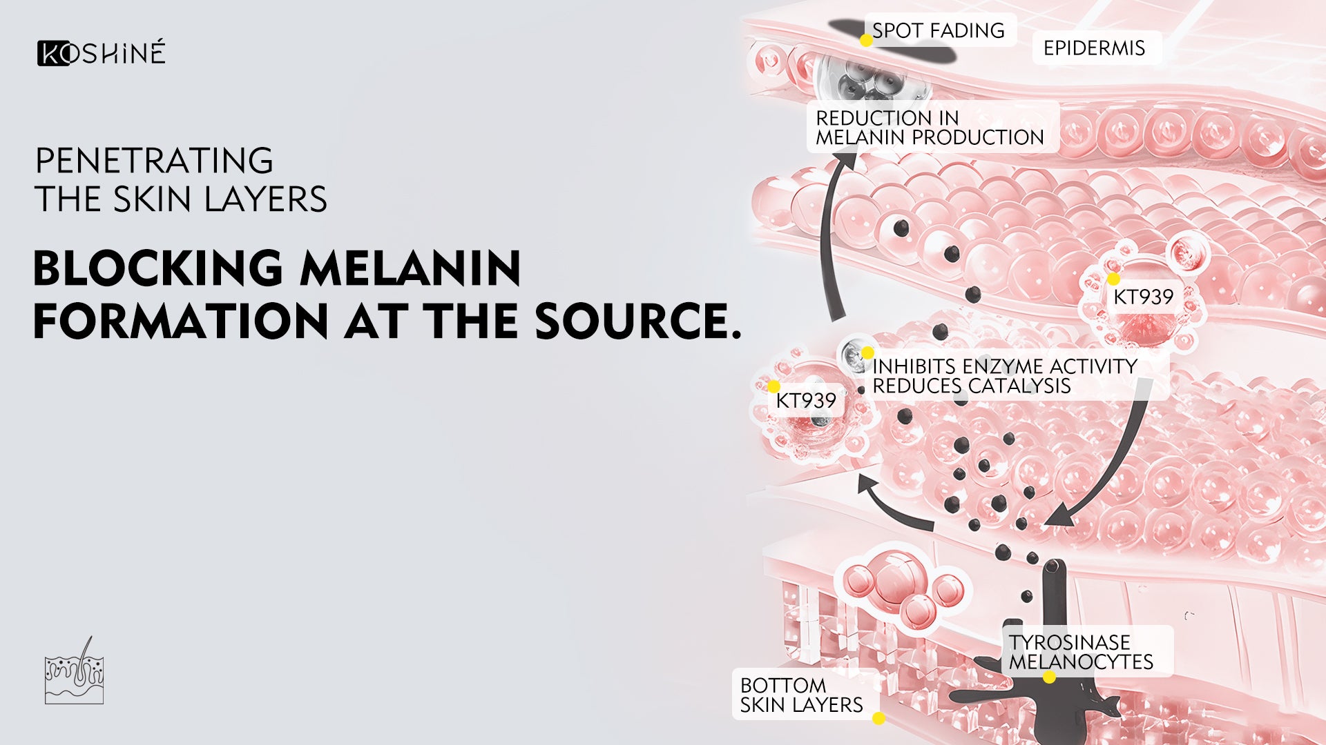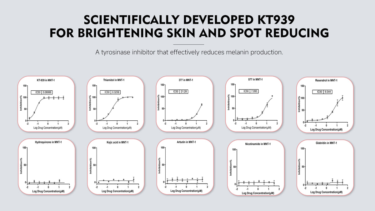 By inhibiting tyrosinase activity, KT939 effectively reduces melanin at the source.